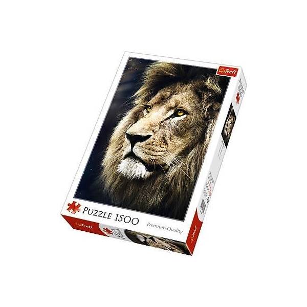 Puzzle 1500 elementów z portretem lwa. Po ułożeniu powstanie obrazek o wymiarach 85x58 cm. Wysoką jakość, nasycenie kolorów i bezpieczeństwo układania zapewnia kalandrowany papier odbijający światło, pokryty ekologicznymi farbami spożywczymi.